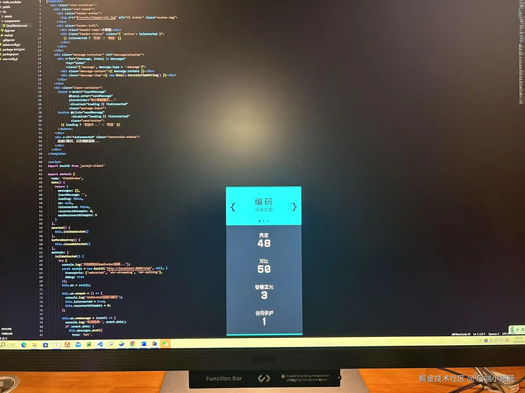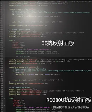 在编写代码时,RD280U的「亮色/深色编程模式」给了我意外惊喜,深色主题主要适合黑色编码背景的IDE,亮色主题适合白色背景,我试了一下体验感也是拉满了,深色编程模式下整个屏幕的色彩对比度让IDE显得高级感满满: