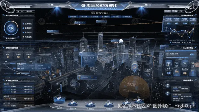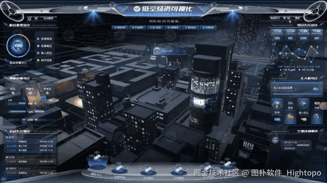 图扑软件 HT 运用低代码数字孪生工具打造轻量化智慧城市 GIS 低空经济无人机运维监控平台,在空域管理、智慧物流、外卖配送等场景中,实现航线优化、成本管控、风险预警等服务创新目标。结合空间语义分析,提供 3D 立体视角,实现航线智能规划与动态导航,在航线优化、任务协同、风险预判等核心功能方面具有不可替代的优势。