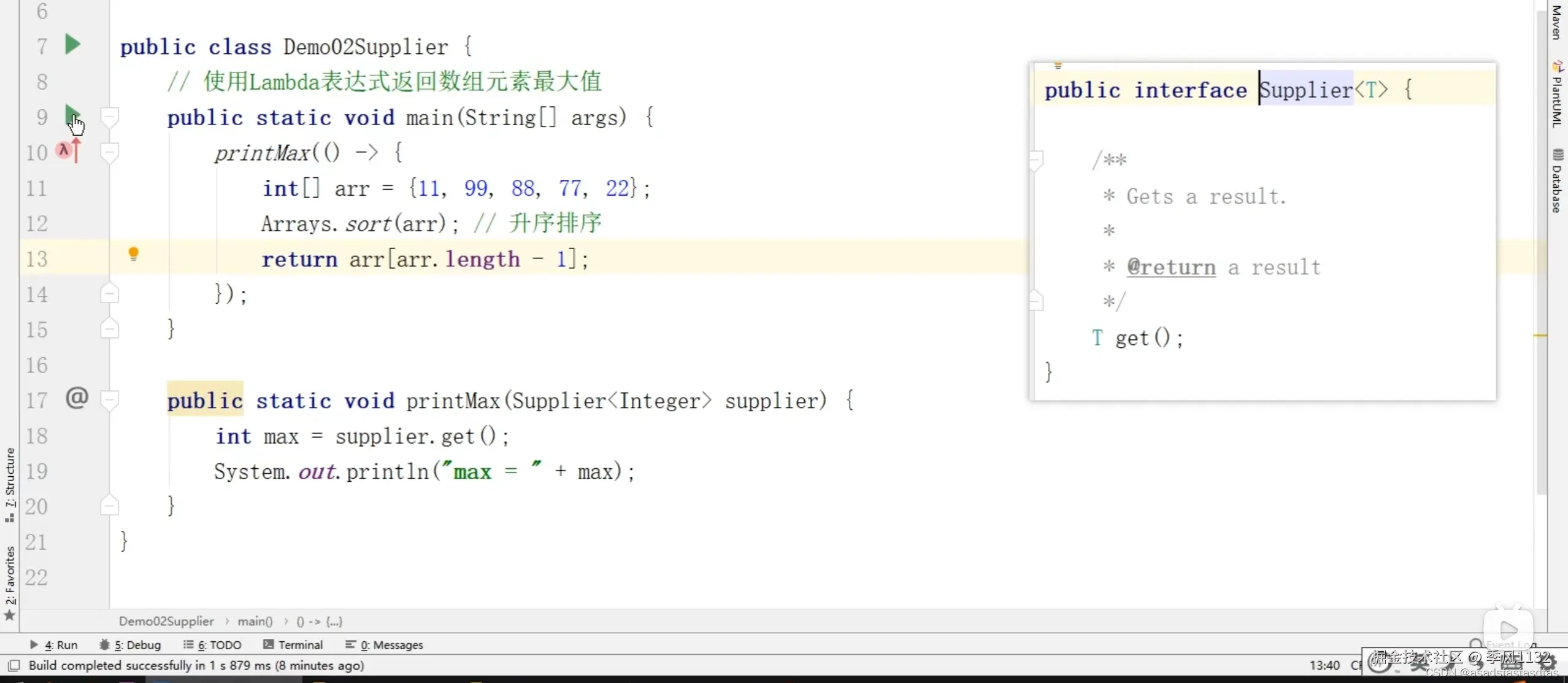 使用Supplier接口作为方法参数类型,通过Lambda表达式求出int数组中的最大值