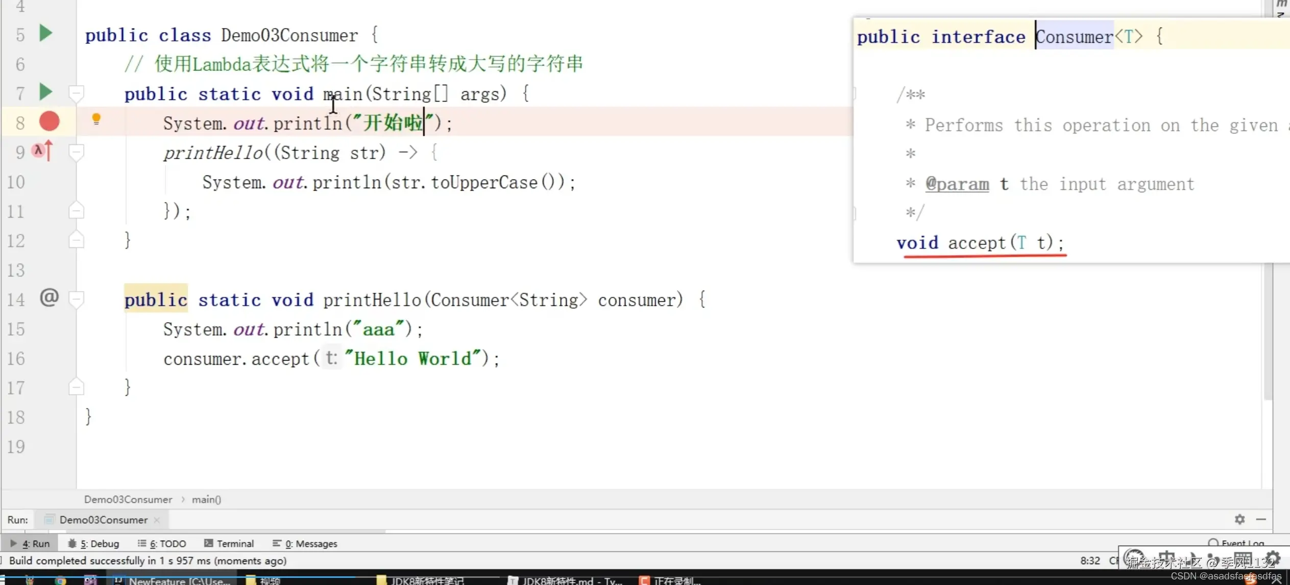 它是函数式编程的的一个重要特性,标志着Java向函数式编程迈出了重要的第一步