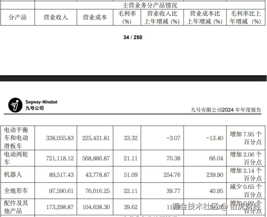 比如九号的机器人业务,虽然收入占比不高,但毛利率远超其他业务板块,其机器人业务去年的收入增速达到了254.76%,带动公司毛利率同比增长2.26个百分点至30.48%。