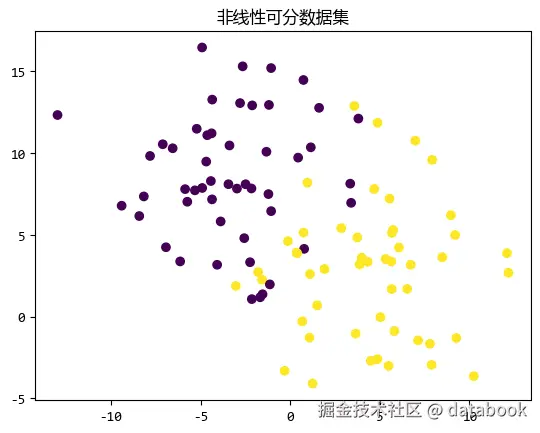 接下来演示不同损失函数对SVM训练效果的影响,我们使用 scikit-learn 构造一个简单的数据集,