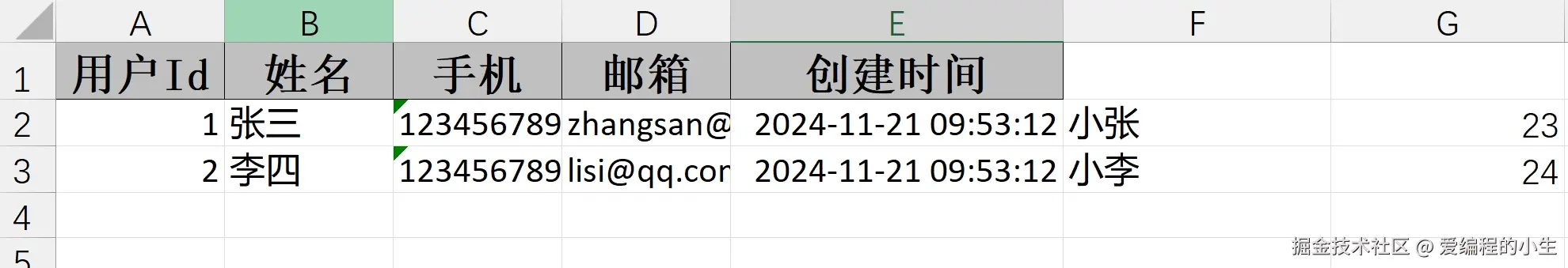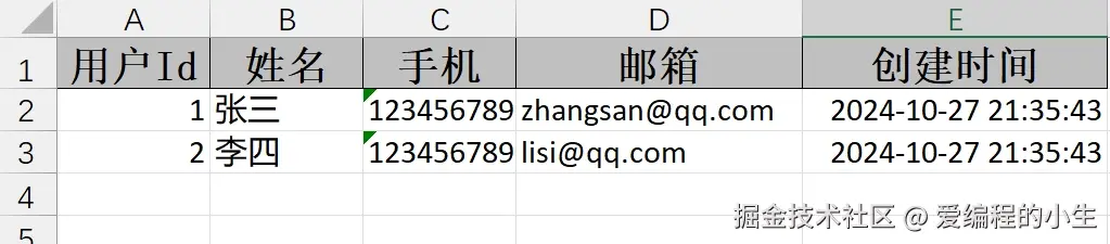 userList.add(new User(2, "李四", "12345678902", "lisi@qq.com", new Date()));