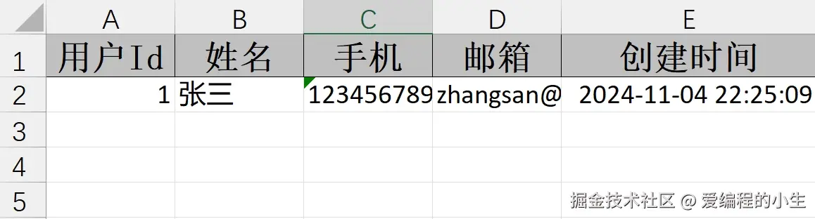 可以看到 List 列表的数据导出内容为 String 字符串,显示在一个单元格内