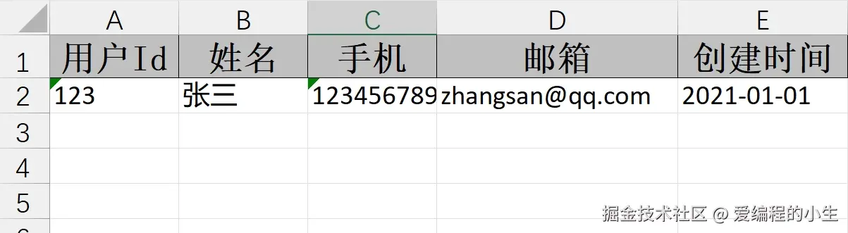 User user = new User(1, "张三", "12345678901", "zhangsan@qq.com", new Date());