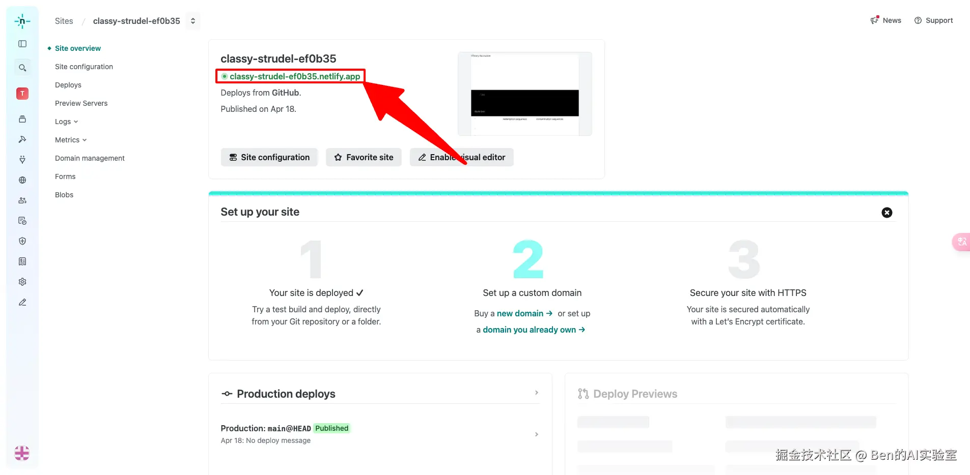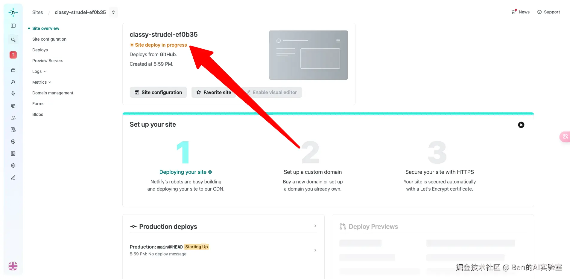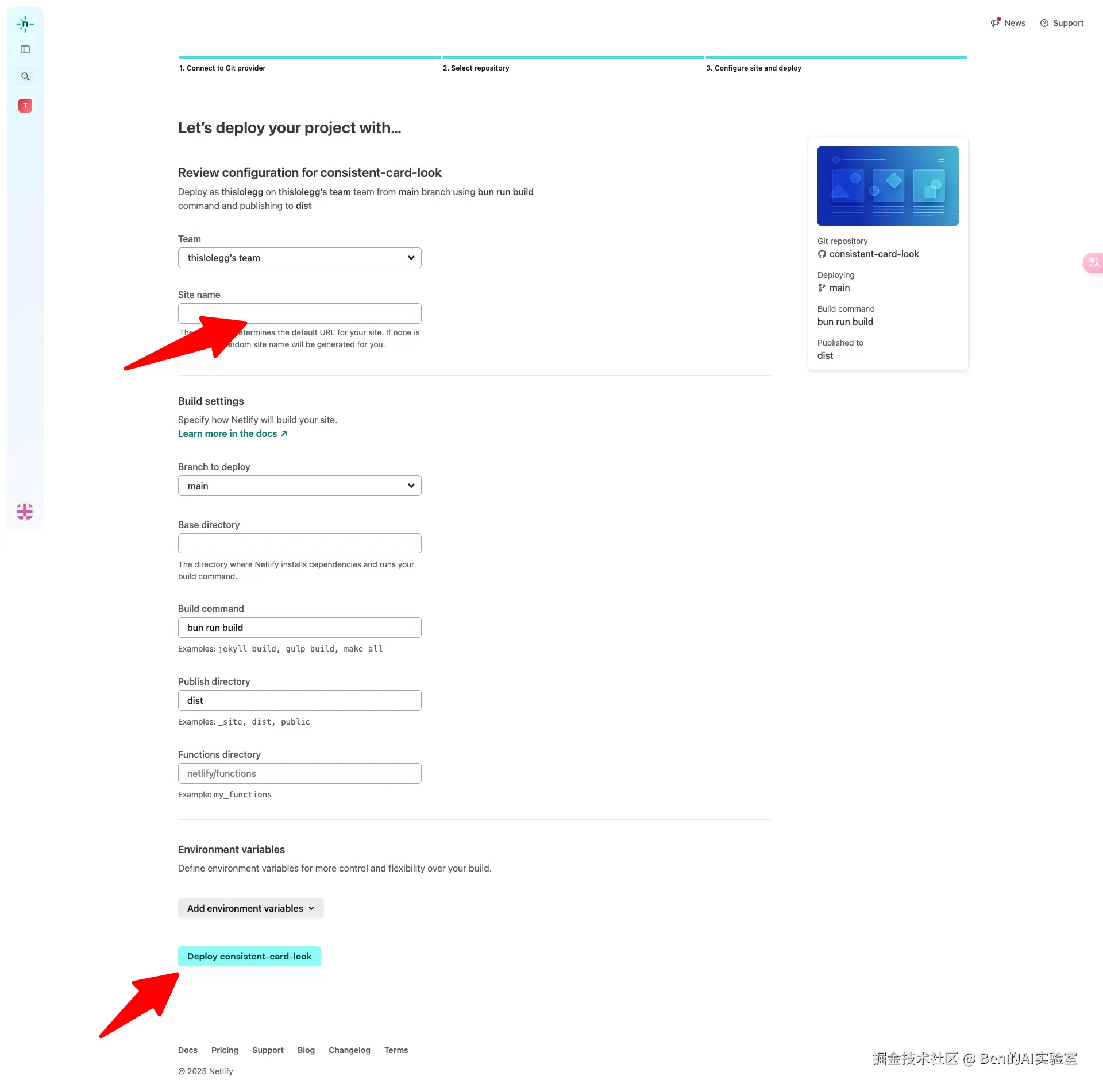 进入部署页面:填写自定义Site name,点击底部【Deploy XXXX】按钮,等待部署完成即可。