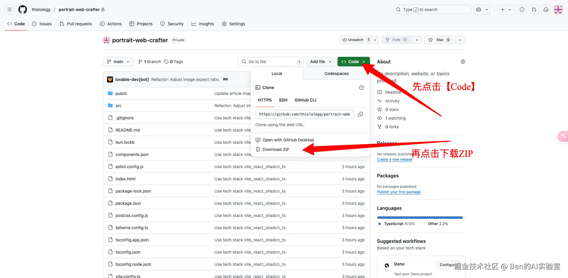 - 第一类是直接在右上角可以点击下载,将整个项目的源文件下载到本地。(v0.dev / bolt.new)、