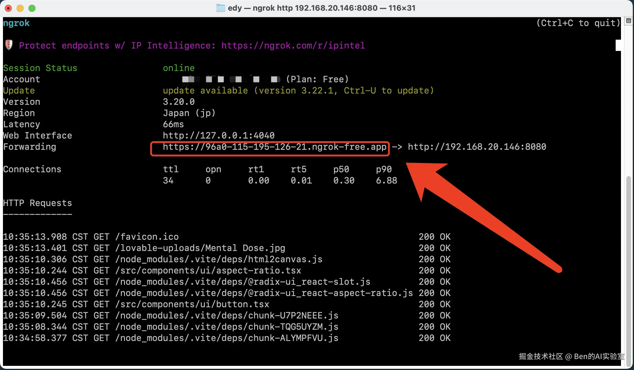 ngrok http 192.168.20.146:8080(替换为你的实际地址)。