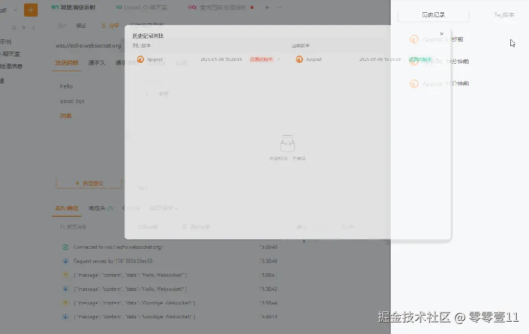 在Apipost中,Websocket与Socket.IO被拆分,我们需单独创建两种类型的接口进行调试。同时,这两种类型都支持维护多个消息示例。