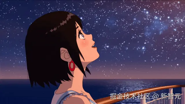 提示词:在星空下,一位短黑发、眼睛大而富有表现力的女性,仿佛来自 1980 年代的日本动漫,她微笑着仰望星空。她穿着夏季连衣裙,佩戴红色圆形耳环,站在漂浮在海上的游轮甲板上。场景以怀旧的动漫风格呈现,捕捉到了在星空下,游轮上度过的宁静而充满激情的夜晚氛围。