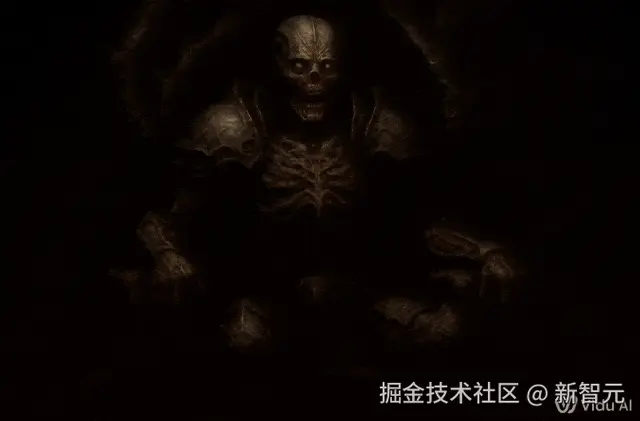 再比如这位网友,用 Q1 做出了一个黑暗奇幻场景——生物机械骑士和巨大的蠕动触手展开激战。