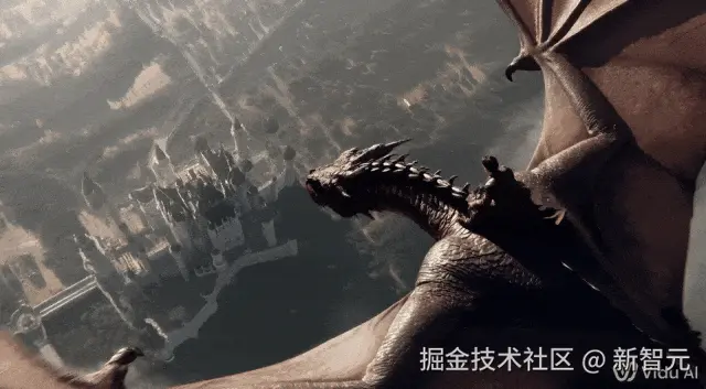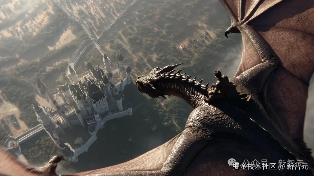 接下来这段依然是 1080p 的高清视频,一个人正坐在一头巨大的飞龙上快速飞翔。