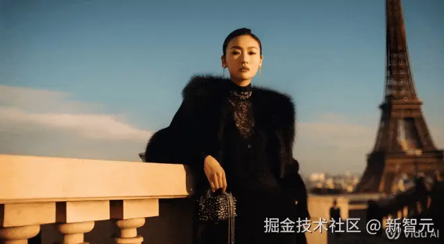 比如给出两张图,一个穿着时尚的模特站在桥上,身后是巴黎铁塔,另一张图是男子戴着墨镜,映出第一张图的场景。