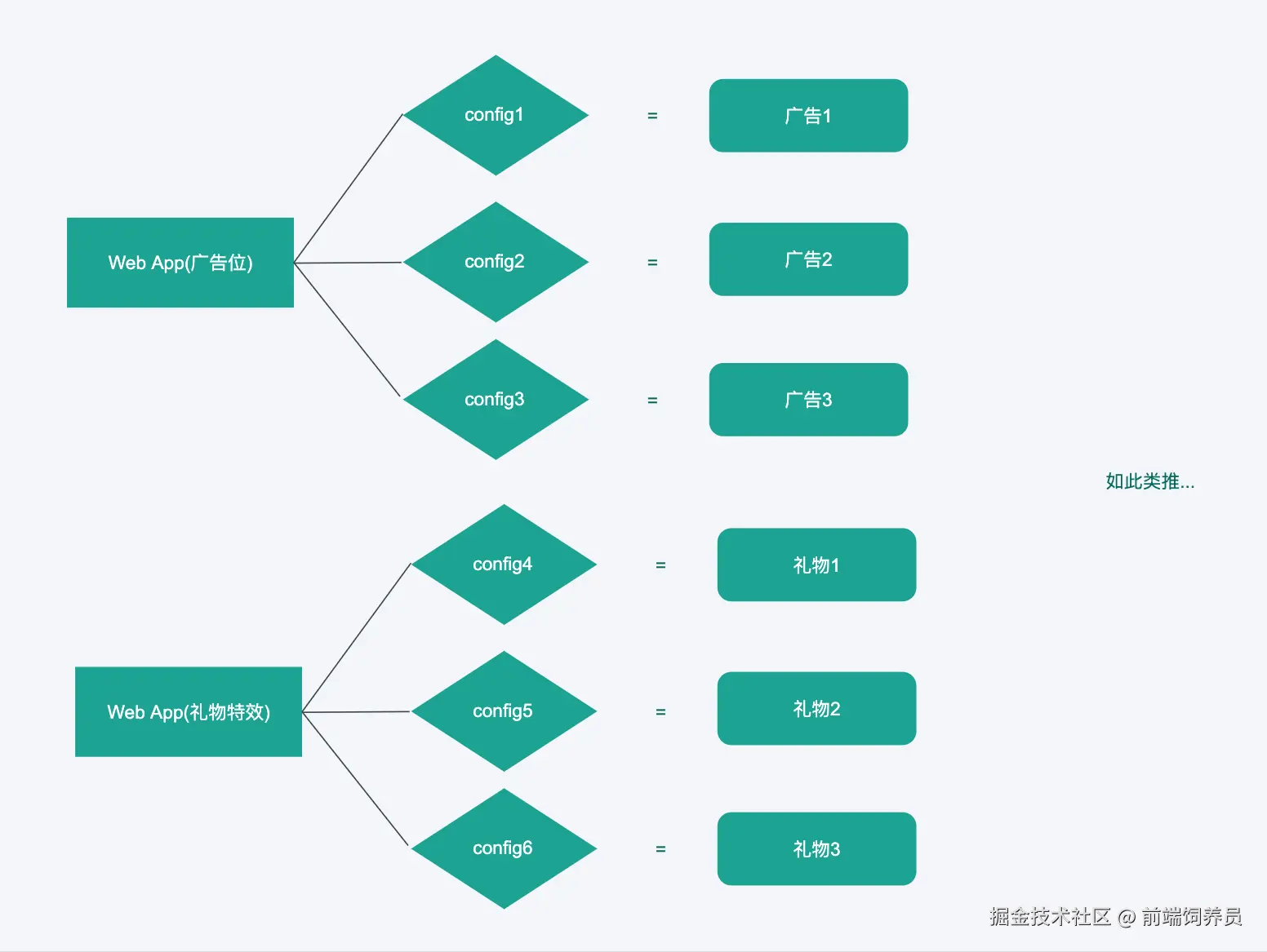 我们知道,在直播课堂中,一堂课里会有很多页课件,不同的课程使用的课件各不相同。这些课件的加载方式是有一套固定的规则的。同理,直播间内的广告位,分享时的弹出页,以及各种礼物动效等等,这些有其特有加载规则的直播间内容,就可以搞成各种 Web App 应用,不同的只是加载的配置和资源不同。