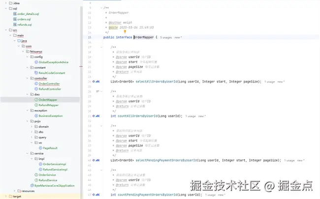 假设开发一个电商平台的订单支付系统,要实现含超时关单和回调校验的支付状态机。在传统开发模式下,开发人员需花费大量时间编写代码,还要反复测试以确保逻辑正确。使用飞算 JavaAI 时,开发人员只需按特定格式输入需求。下面展示飞算 JavaAI 生成的部分关键代码。