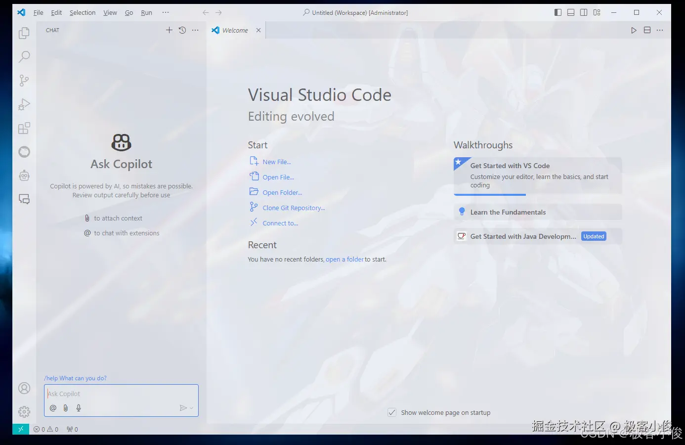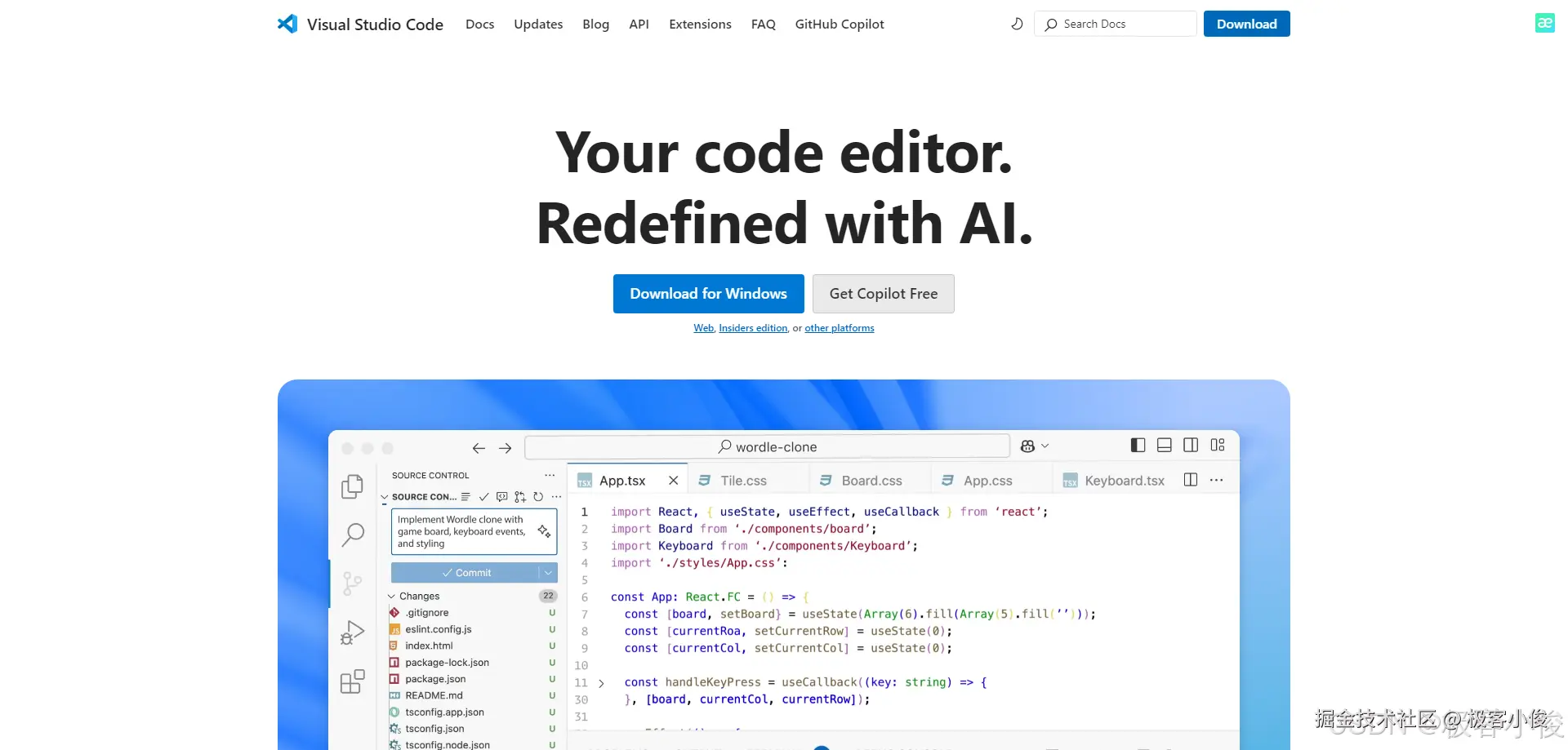 这里我以Windows版VSCode来安装GitHub Copilot插件,还没有安装VSCode的朋友赶紧先去下载安装一下!