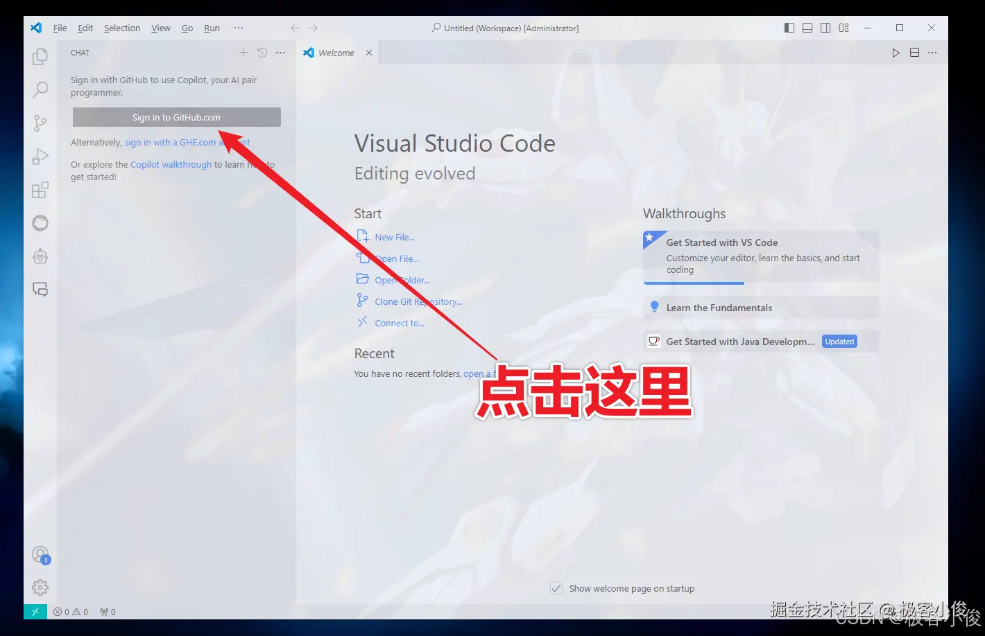 这里要注意一下,使用GitHub Copilot之前你需要有一个GitHub账户