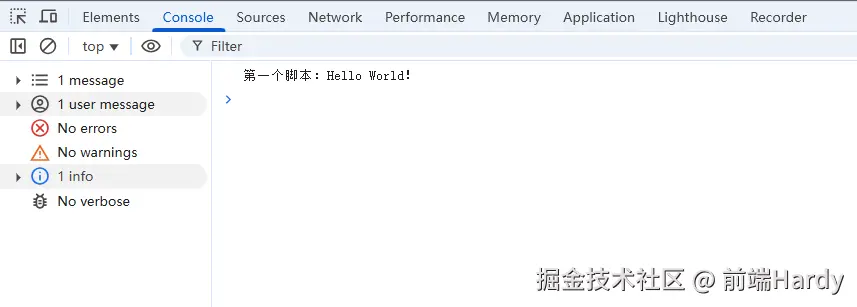 console.log("第一个脚本:Hello World!");
