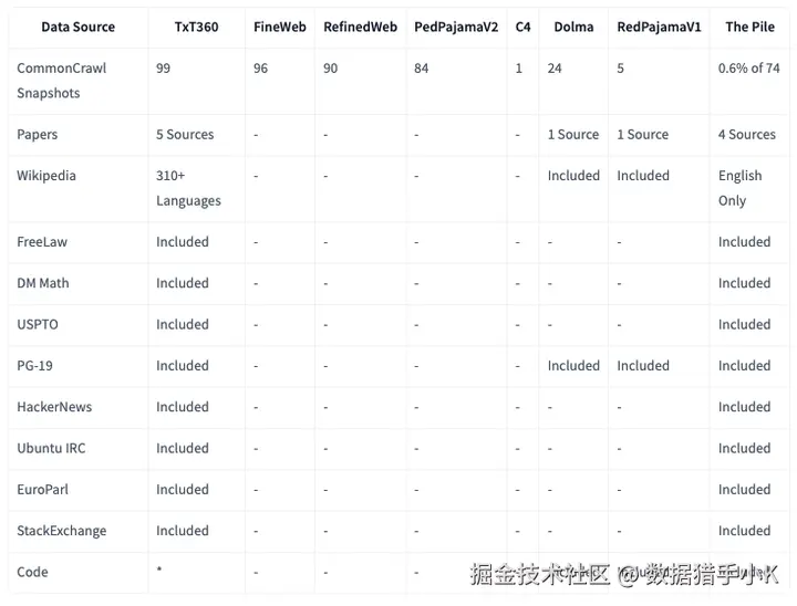 数据集地址:TxT360|预训练语言模型数据集|预训练数据集
