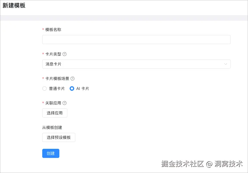 在创建空白应用页面选择应用类型,应用名称&图标,应用的简单描述。