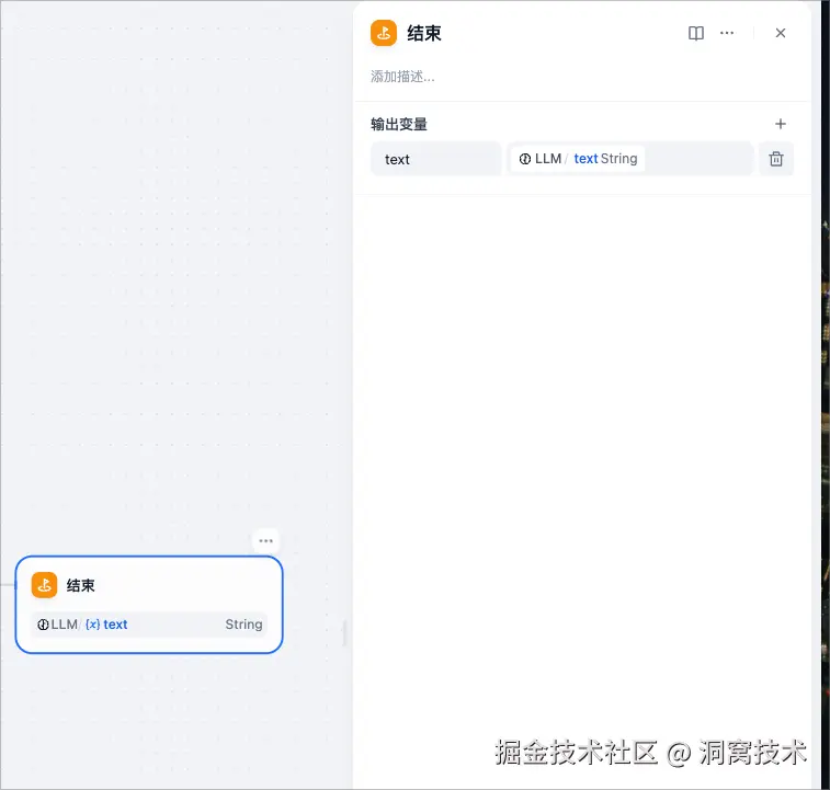 获取当前日期之后,把数据存入到【currentDate】变量中,作为LLM节点的处理过程中用到的数据。