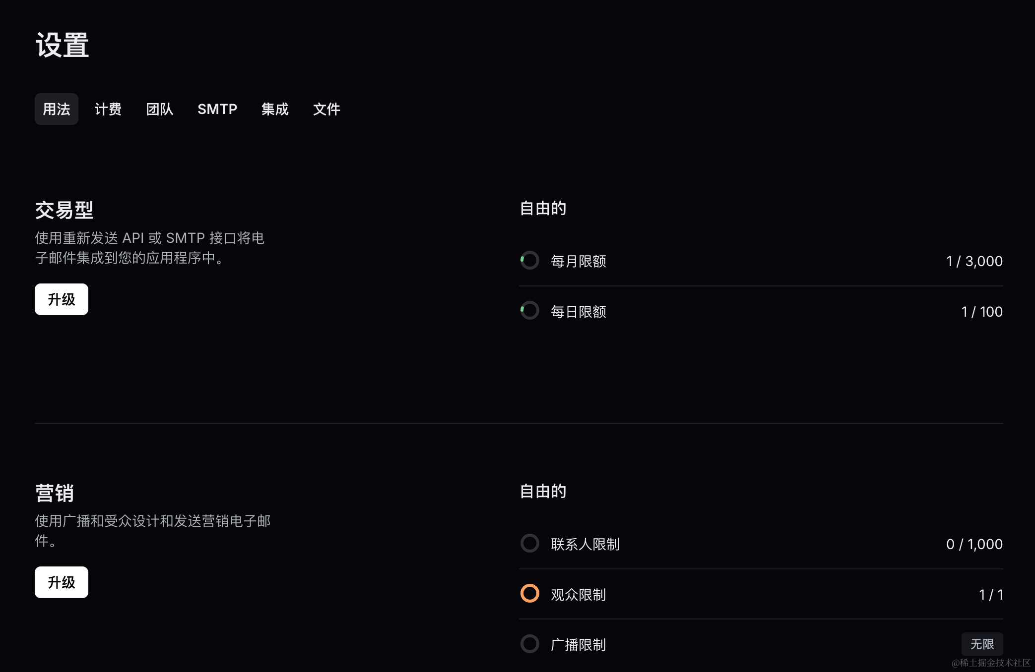 | 免费额度 | 100 封/天 | 100 封/天 | 1,000 封/月 | 62,000 封/月 |