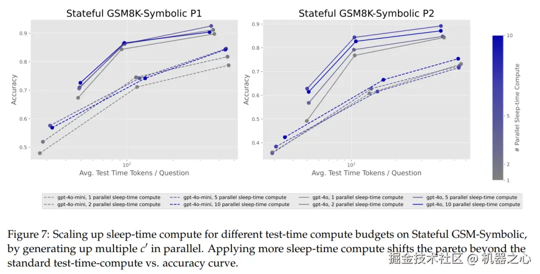 在图 7 中,我们看到进一步扩展睡眠时间计算会使帕累托曲线外移,在相似的测试时间预算下,性能提升高达 13%。