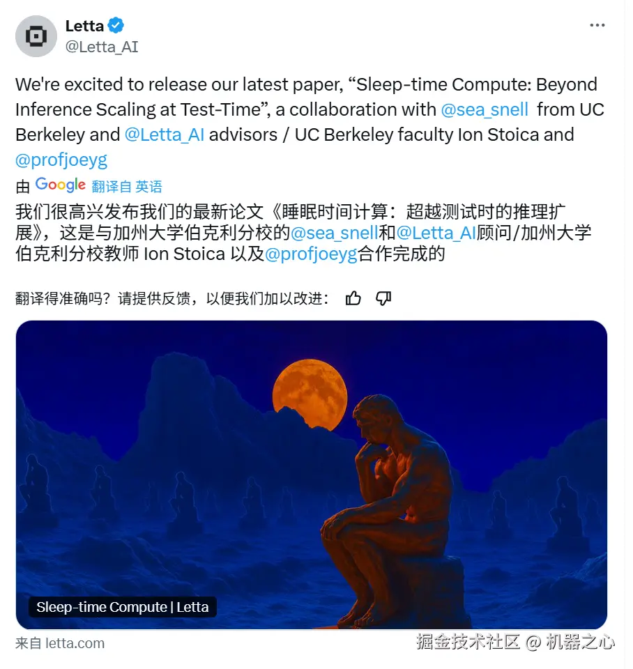 近日,AI 初创公司 Letta 和 UC 伯克利的研究人员提出了一种扩展人工智能能力的新方式 —— 睡眠时间计算(Sleep-time Compute),让模型在空闲时间「思考」,旨在提高大型语言模型(LLM)的推理效率,降低推理成本,同时保持或提升准确性。