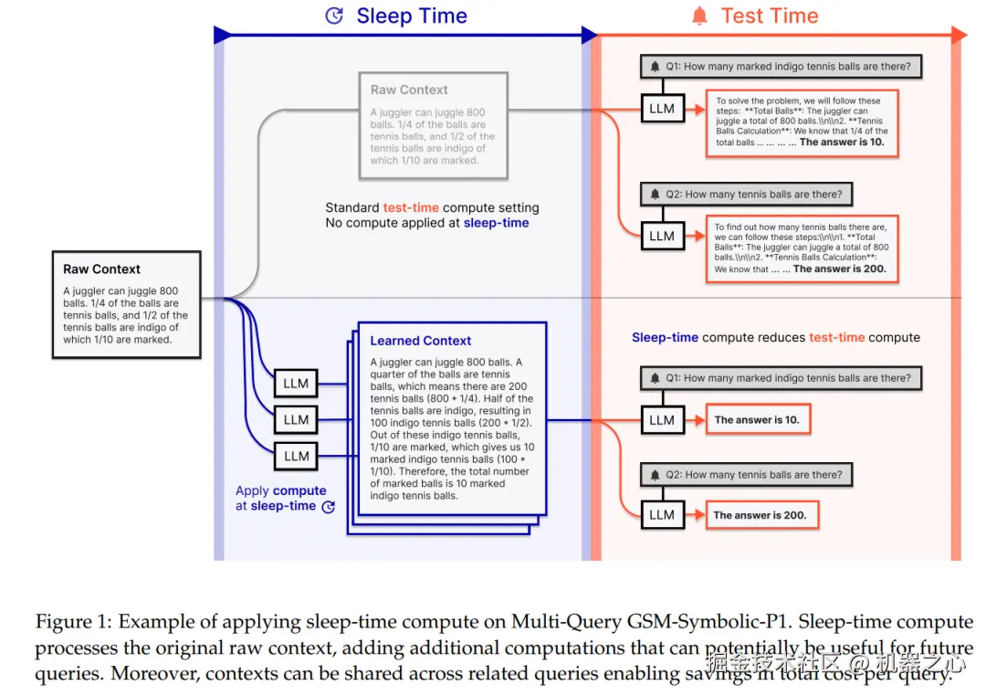 在睡眠时段执行推理的过程将「原始上下文」(raw context)转化为「学习到的上下文」(learned context)。与仅拥有原始上下文的智能体相比,具备预处理能力的智能体可在实际应答时减少即时推理计算的负担,因为它们已经提前进行了思考。
