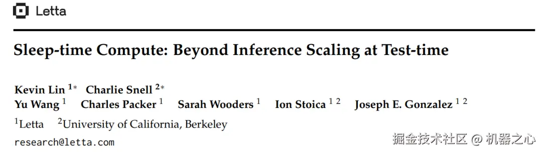 论文标题: Sleep-time Compute: Beyond Inference Scaling at Test-time