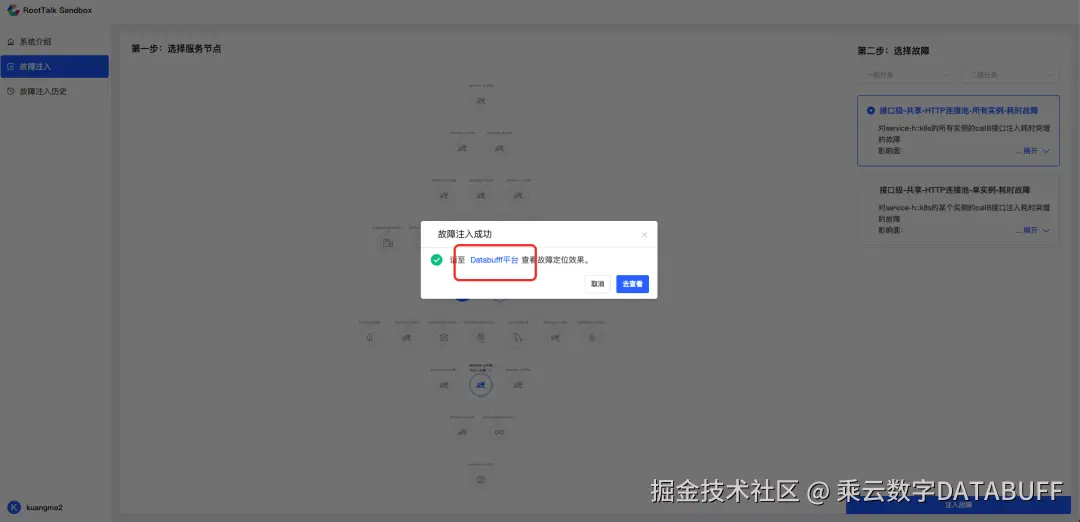 点击注入故障后,通常需要等待2到3分钟,然后会自动弹出DataBuff平台的查看地址,点击跳转即可自动查看DataBuff平台。