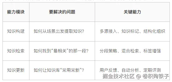 知识构建能力:是否能构建出贴合业务场景的知识? 不只是数据搬运工,而是场景驱动下的知识策划能力知识检索能力:是否能快速、精准地定位到需要的知识?