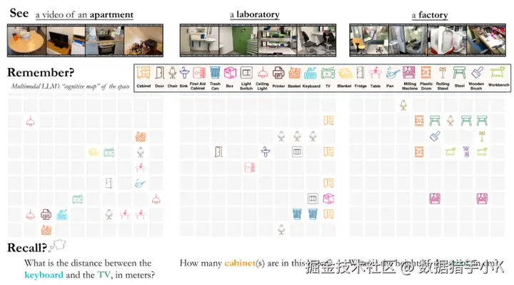 无论是在家中、工作场所还是其他地方,感知空间、记住其布局并检索这些空间信息以按需回答问题的能力是视觉空间智能的一个关键方面。最近的 Multimodal LLMs 可以理解一般视频,但是当看到环境的视频记录时,他们能否“空间思考”?他们能否构建一个准确、隐含的“认知地图”,让他们能够回答有关空间的问题?使用 MLLM 增强空间智能的优势和局限性是什么?我们通过设置供 MLLM 观看的视频数据、构建 VQA 基准来检查他们的召回情况以及检查 MLLM 实际记住和理解的内容来深入研究这些问题。