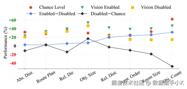 1、多模态大语言模型(MLLMs)在视频理解、文本理解和空间推理方面存在挑战,这些是提高VSI-Bench基准性能的关键瓶颈。