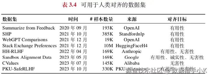 微调数据集用于增强模型的任务解决能力,本节介绍了指令微调数据集和人类对齐数据集。