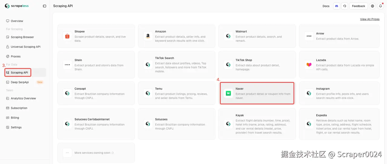 - Scrapeless Naver API将从Naver Shop中提取详细的产品数据,包括价格、卖家信息、评论等。