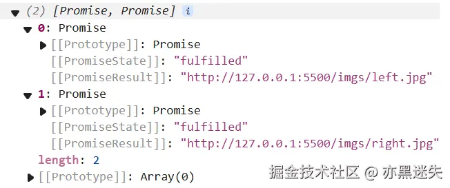 promiseList 数组里的值为 promise 对象,如果等图片加载后去查看 ,结果如下: