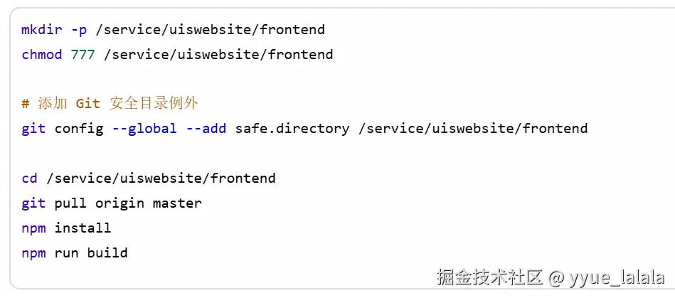 - 如果没有使用jenkins默认的目录,而是像我一样单独用了一个目录。一开始写好shell直接构建会报错,因为原本的文件夹是空的,没有初始化git,在shell中直接编写
