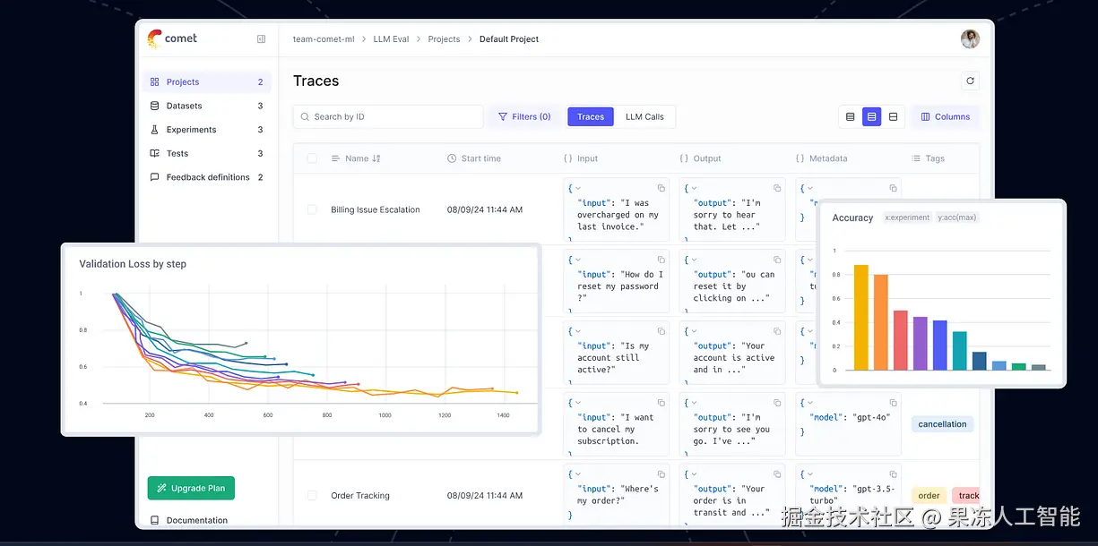 Opik 是 Comet 出的,它就是为了监控你的 AI 干了啥。比如 AI 开始瞎回答问题了,Opik 能帮你看到为啥。我有个 bot 老是答得特别二,后来用 Opik 一看,原来是 API 限制搞的鬼。