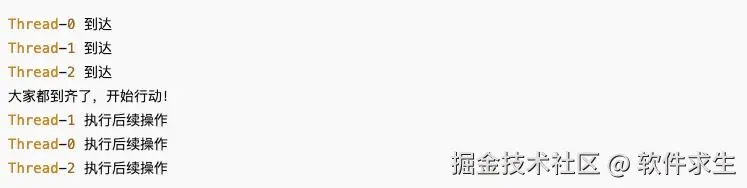 它是让一批线程都到达了障碍点,再一起继续执行。