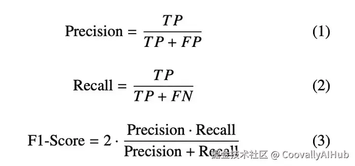采用的评估指标包括精确度、召回率、F1分数、平均精确度 (mAP@50和mAP@50:95),以及平均联合交叉点 (mIoU)。这些指标根据预测边界框与地面实况注释之间的交互作用来量化性能:
