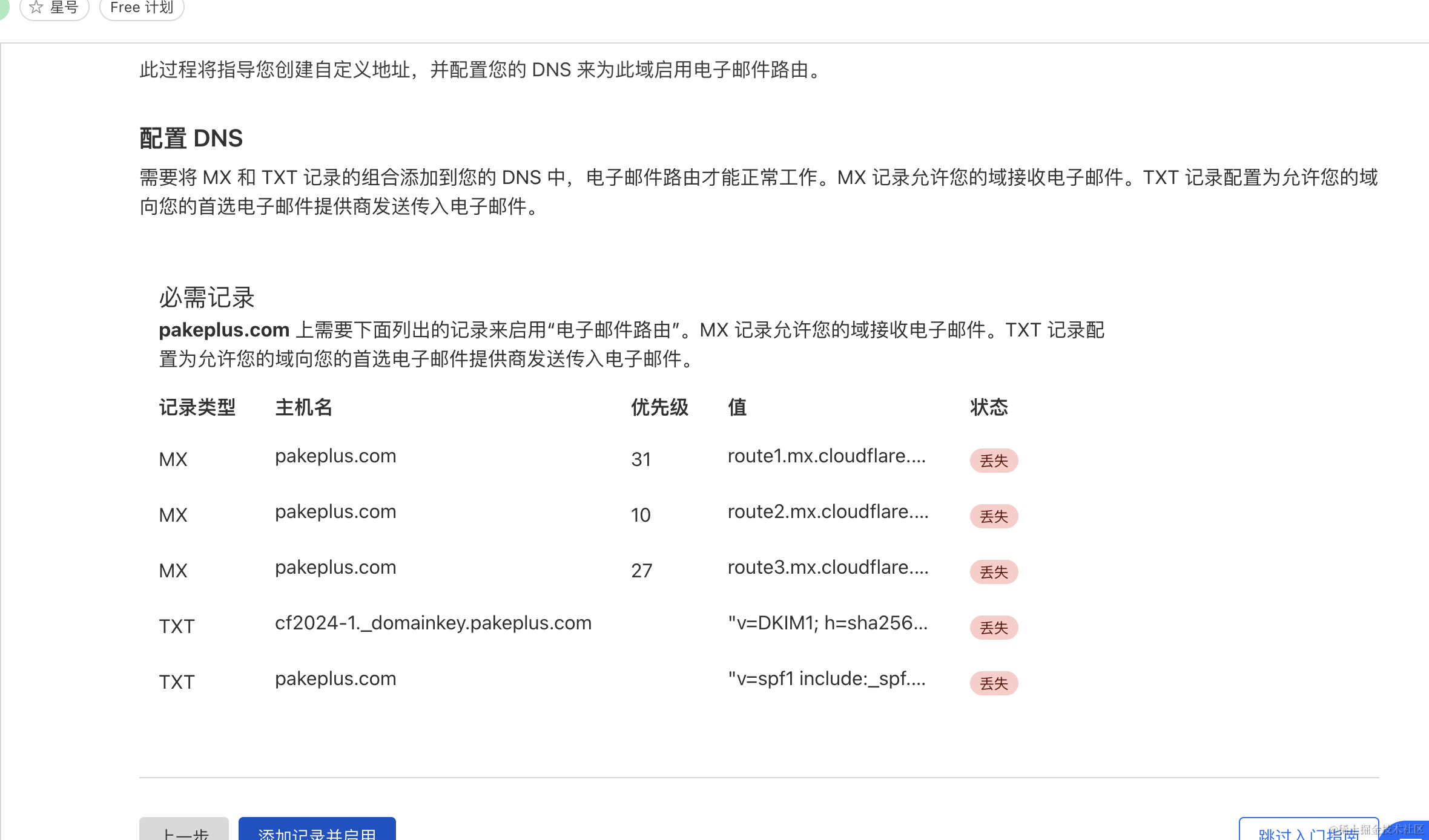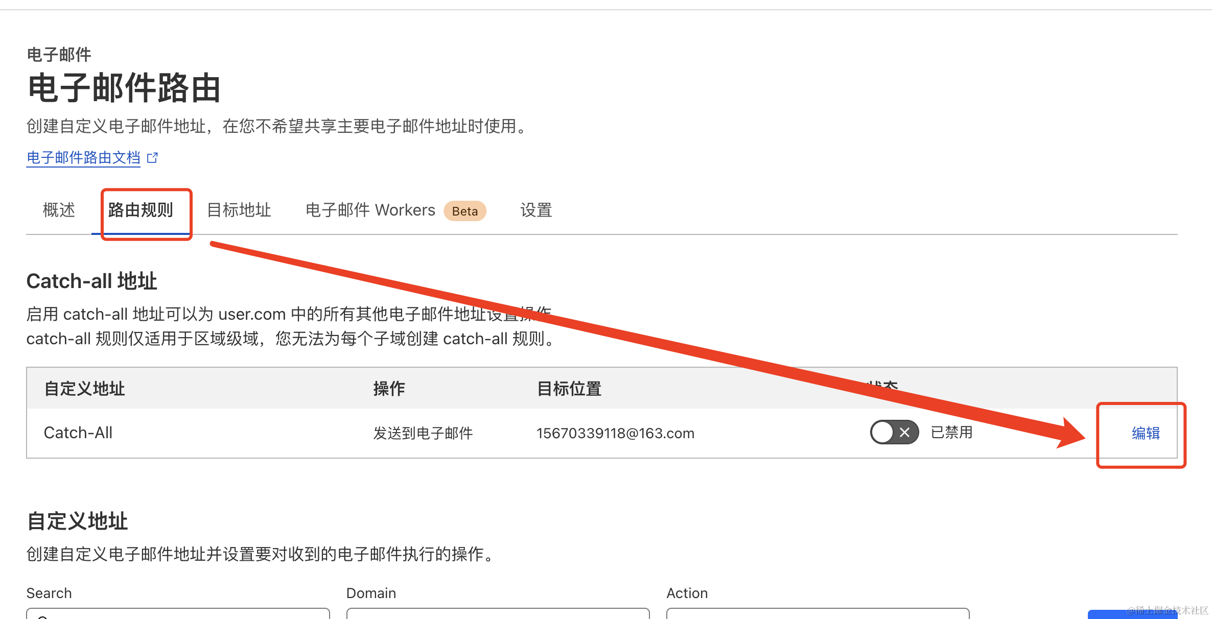 点击添加记录并启用,然后到路由规则中Catch-all点击编辑