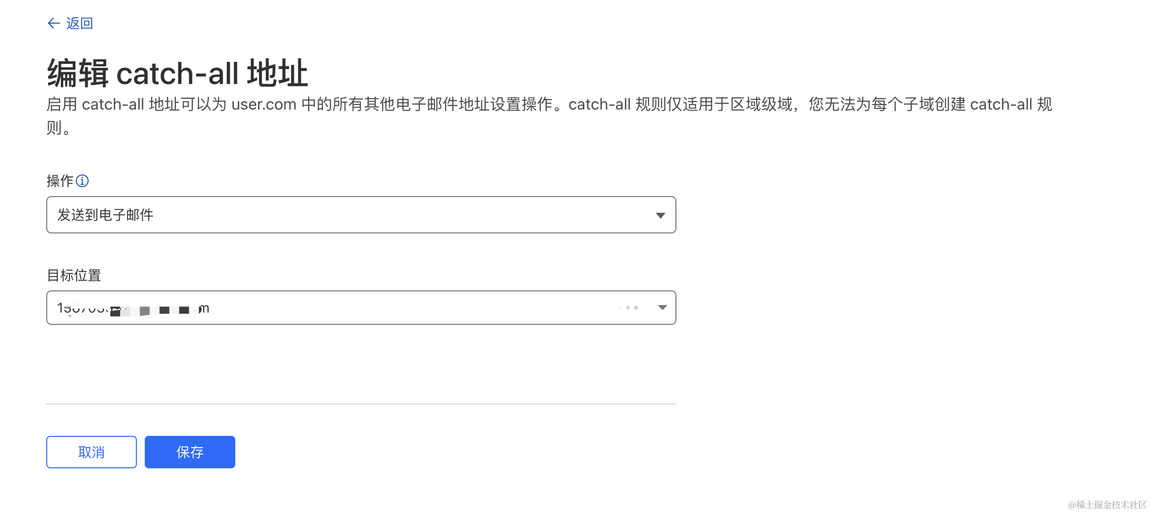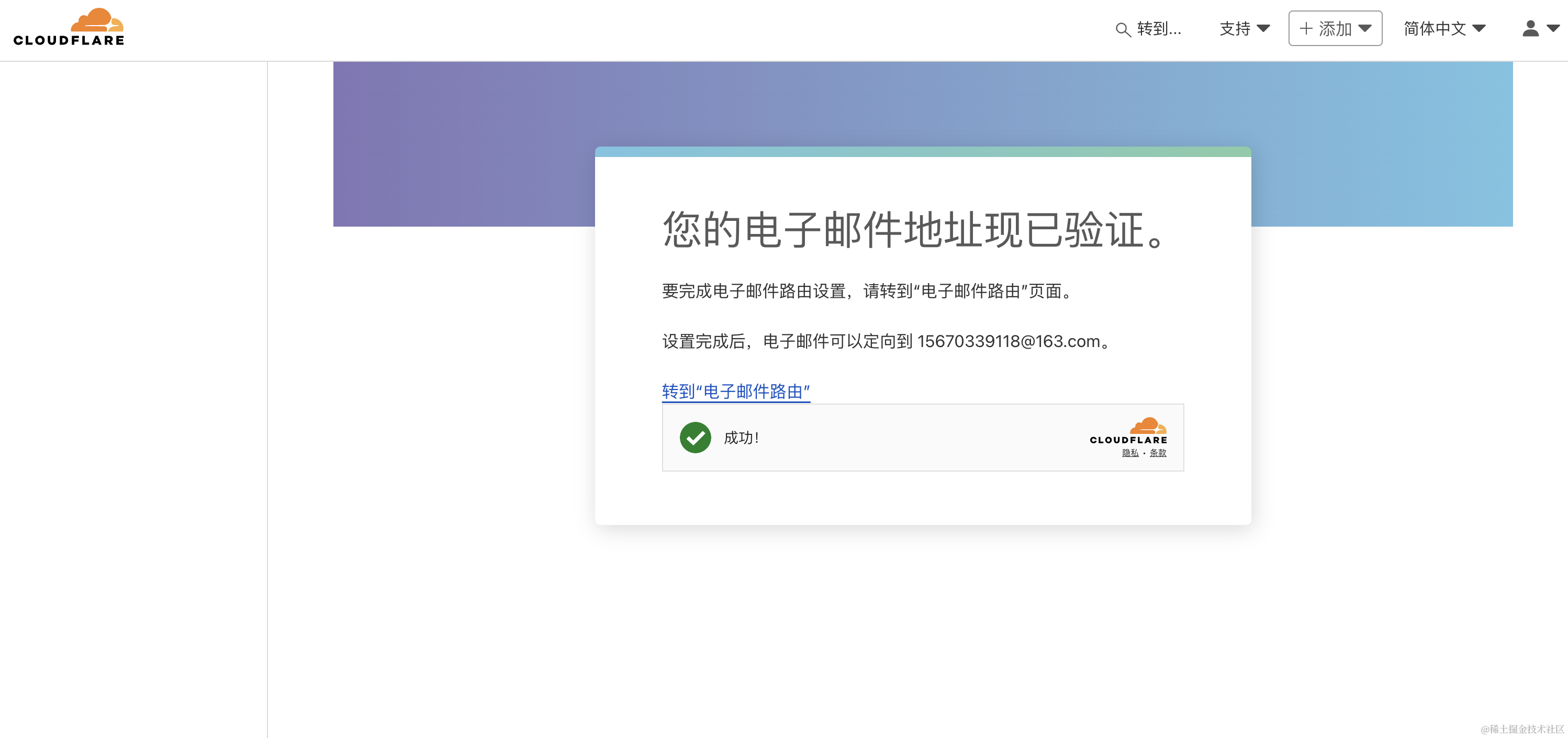 先填写一个你的测试邮箱前缀@域名.com,然后填写一个转发到目标邮箱的地址,可以是163/gmail等邮箱都行,然后点击验证,会收到验证邮件,点击确认: