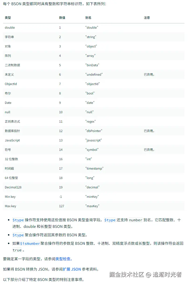 - 官方BSON类型详细介绍:www.mongodb.com/zh-cn/docs/…