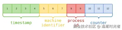 其中包括4-byte Unix 时间戳,3-byte 机器 ID,2-byte 进程 ID,3-byte 计数器(初始化随机)。