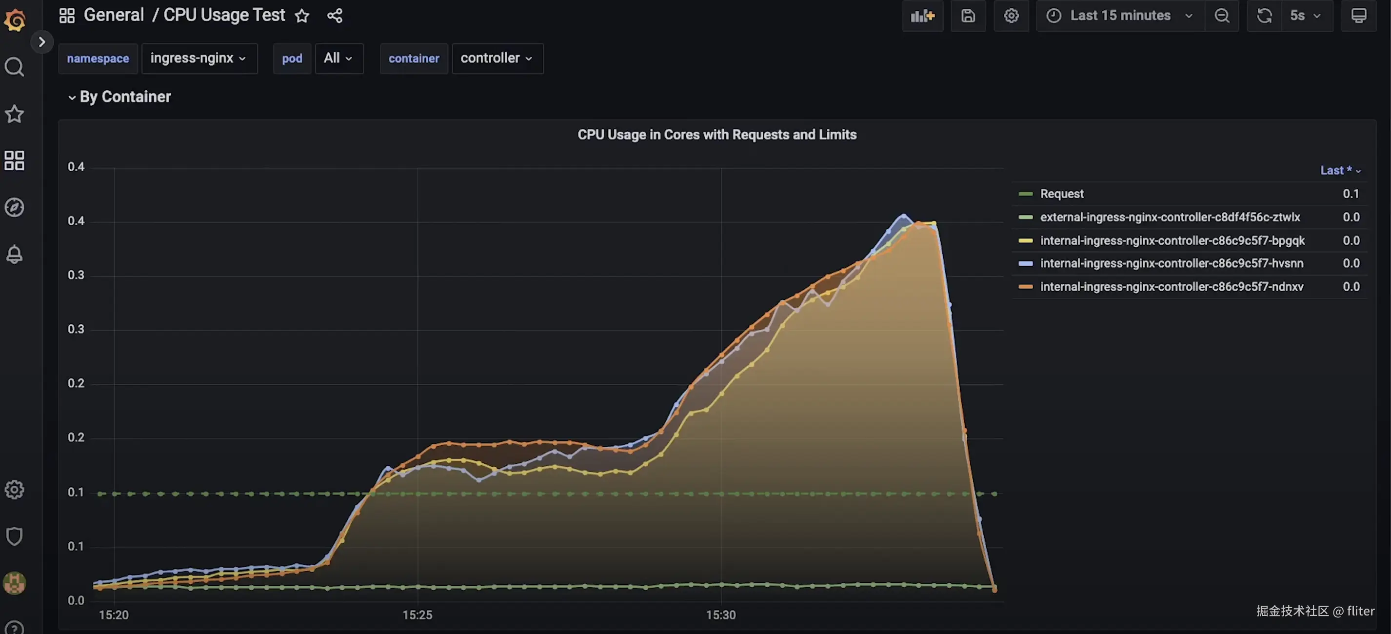 每次使用 Ingress 时,您必须至少监控 Ingress 控制器的 CPU 使用率。如果它们没有足够的资源,可能会导致延迟大幅增加,特别是当您使用 Nginx Ingress 的默认 Helm chart 时。