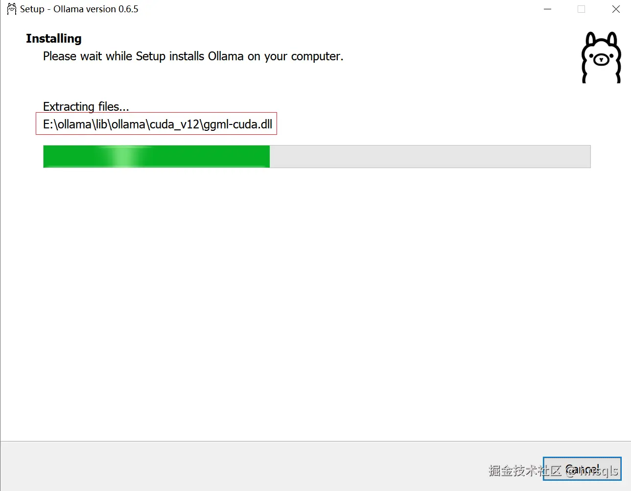 步骤3:在此目录下:启动安装程序 OllamaSetup.exe /DIR=E:\ollama