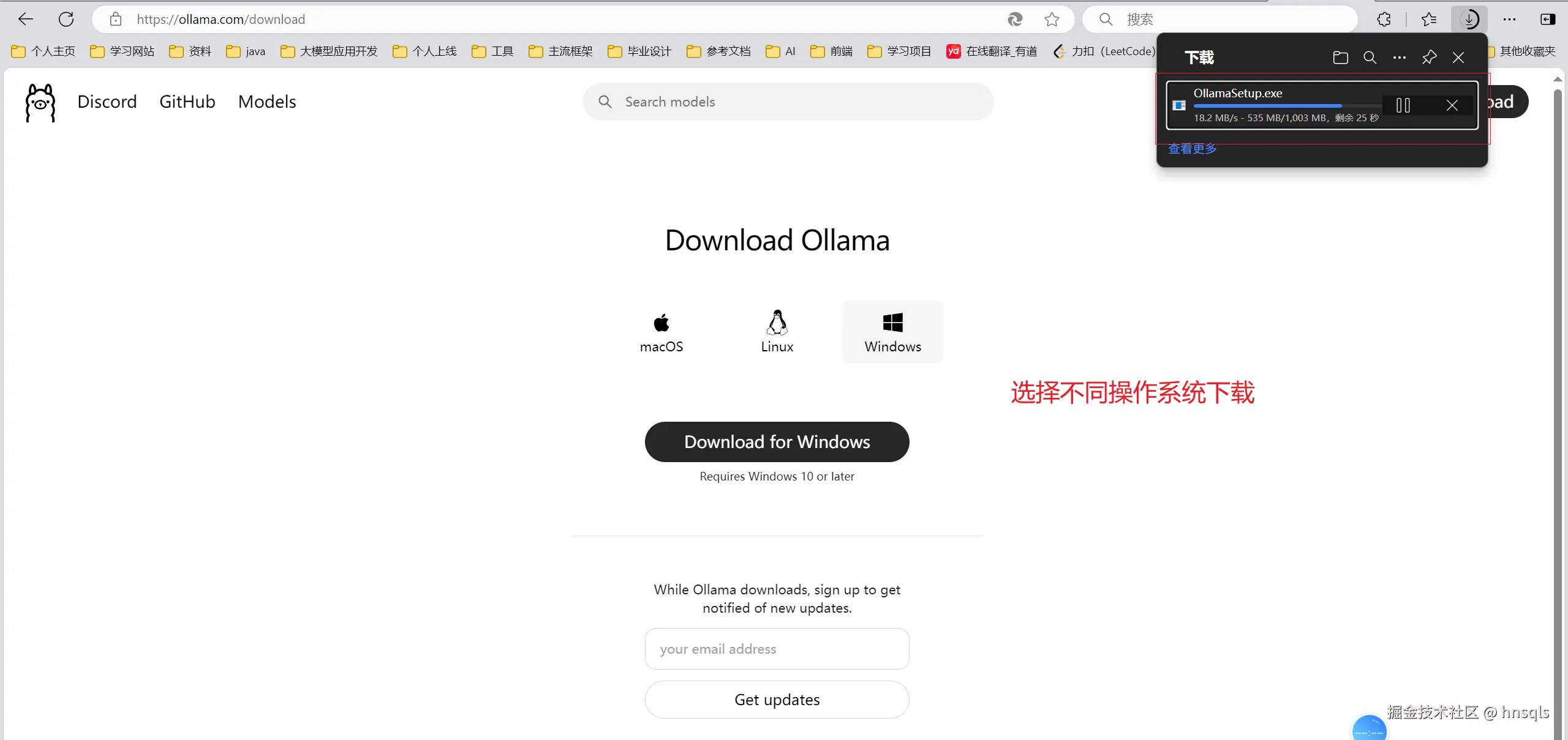 弹出如图下载页面,看出安装在我们指定的位置E/ollama