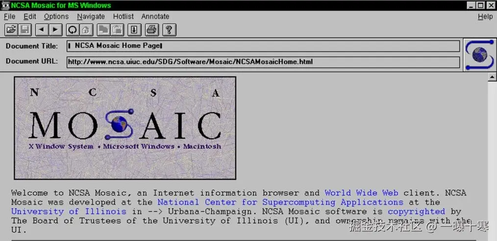 MOSAIC 浏览器界面,已经初具今天浏览器的雏形