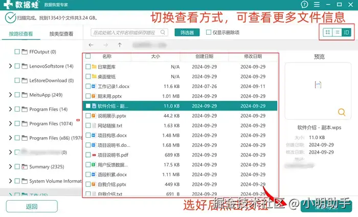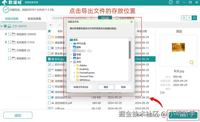 步骤2: 扫描完成后,在指定的位置上选择出自己需要恢复的文件,勾选文件后点击“导出”;